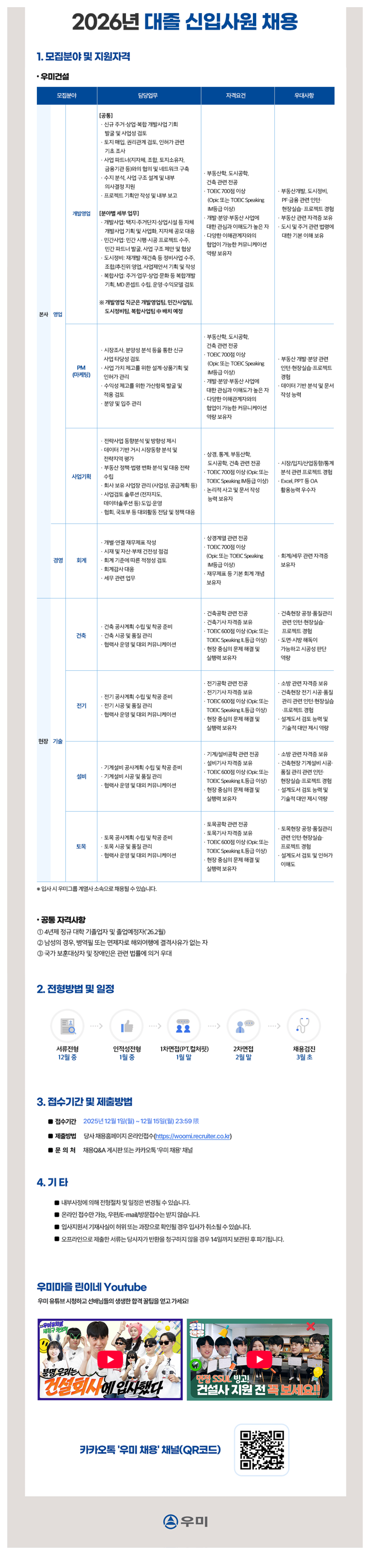 우미건설 대졸 신입사원 모집(~12.15)